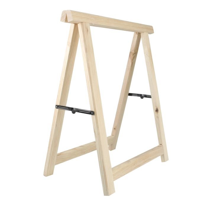 DESCRIPCIÓN: Caballete de madera maciza de pino estándar. Medidas Totales: 73,5 x 75,5 cm. Sección de madera: 50 x 25 mm. DETALLES: Carga máxima para 2 caballetes: 600 kg. En color neutro para poder combinar con tableros de diferentes colores. La madera de pino es muy elástica por lo que no se rompe fácilmente, también es ligera, una propiedad muy importante de cara a futuros desplazamientos del mueble. USOS: Ideal para montaje de tableros de mesas, mesas de trabajo o estudio en casas u oficinas. Aportará a tus mesas un toque artesanal, minimalista y artístico