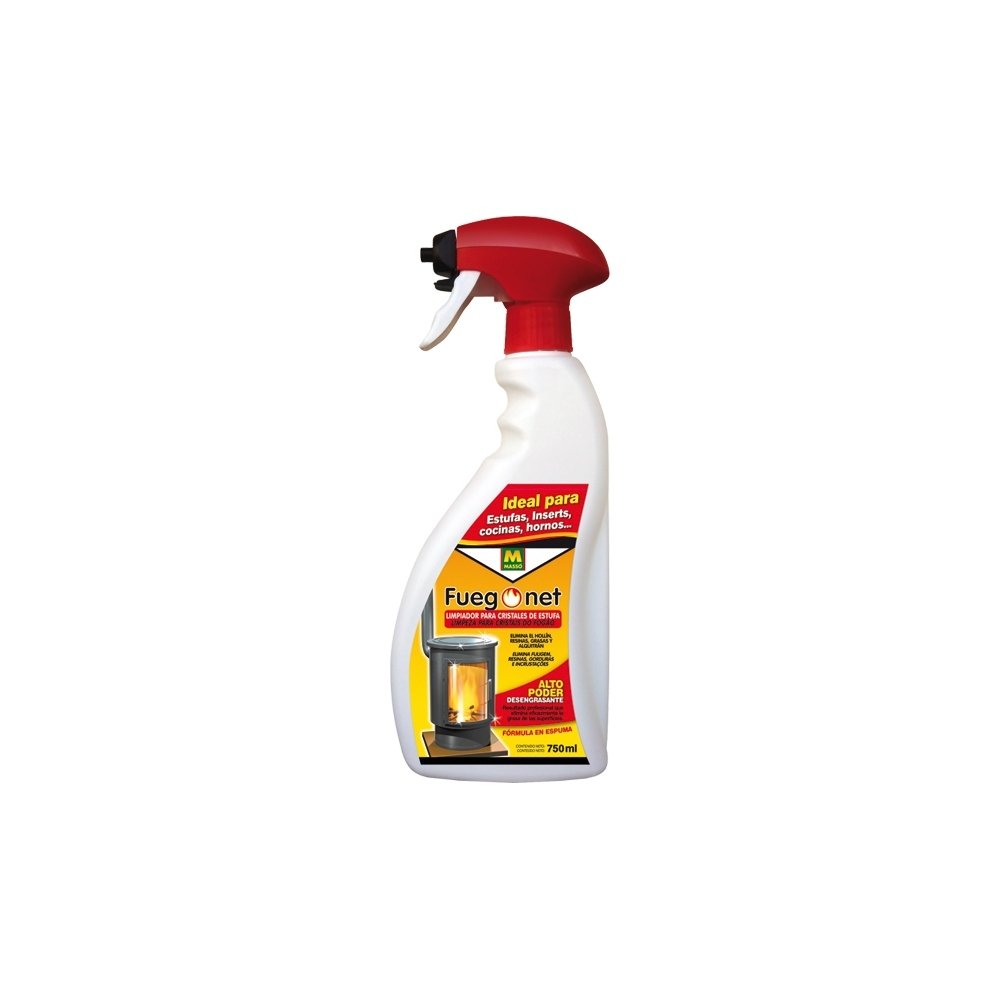 Efectivo limpiador para los cristales de la estufa. Disuelve el hollín, resinas, grasas y alquitrán de las estufas y chimeneas, en cualquier superficie expuesta al fuego. También recomendado como desengrasante (quemadores, hornos, freidoras y extractores).