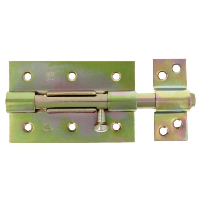 Pasador de sobreponer. Con agujero de Ø8 mm para candados. Fácil instalar. Instalación mediante fijación con tirafondos. Aumenta la seguridad de tus puertas de forma sencilla y eficaz. Información adicional PASADOR DE SOBREPONER: Pestillo de sobreponer especial para puertas de madera de paso. Cuenta con agujero portacandados de 8 mm y orificios avellanados para que los tornillos queden a ras de la placa, garantizando una unión sólida y duradera en el tiempo. USOS: Ampliamente utilizado para reforzar la seguridad de tu hogar y para colocar como pestillo o cerrojo en puertas de dormitorios, baños, despachos o cualquier otra estancia. Muy útil también para fijarse en armarios, verjas o vallas de jardines. DETALLES: Las medidas del pasador son: 100 x 67 mm. Ha sido elaborado con Acero, un material que destaca por su dureza, resistencia a la tracción y larga vida útil. Cuenta con acabado bicromatado. No incluye tornillos, deben adquirirse por separado. INSTALACIÓN: Este pestillo de seguridad se coloca de forma sencilla, no es necesaria la ayuda de un profesional. Coloca el cerrojo a la altura en la que deseas instalarlo, alinea la puerta y el marco de la puerta, marca la posición de los tornillos con un lápiz, luego usa un taladro para apretarlos.